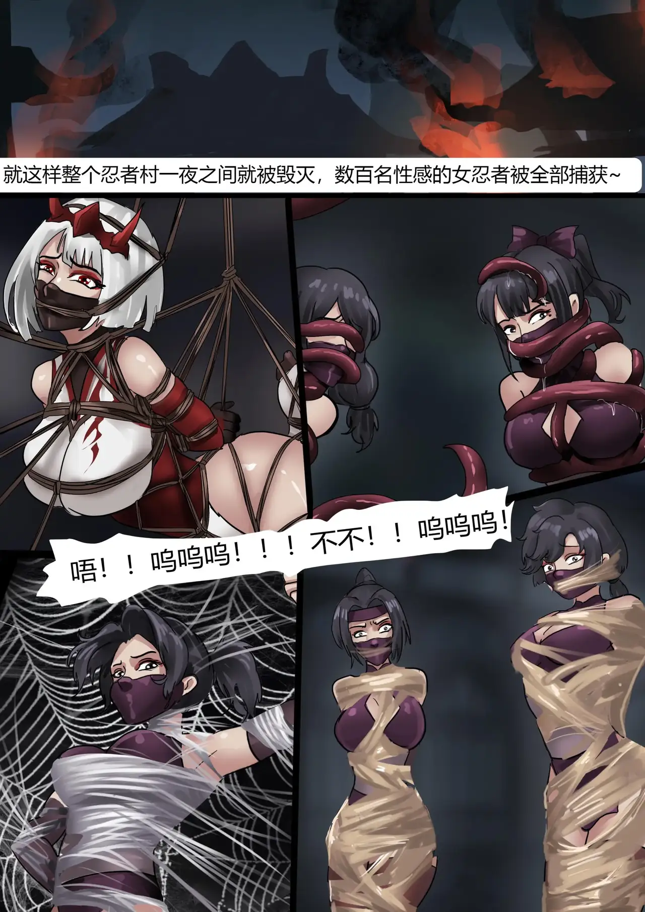 [King]《经典题材—性感女忍者村的陷落》超大规模群缚 黏液 蛛丝 触手 各种玩法 性感情趣女忍被成群囚禁玩弄