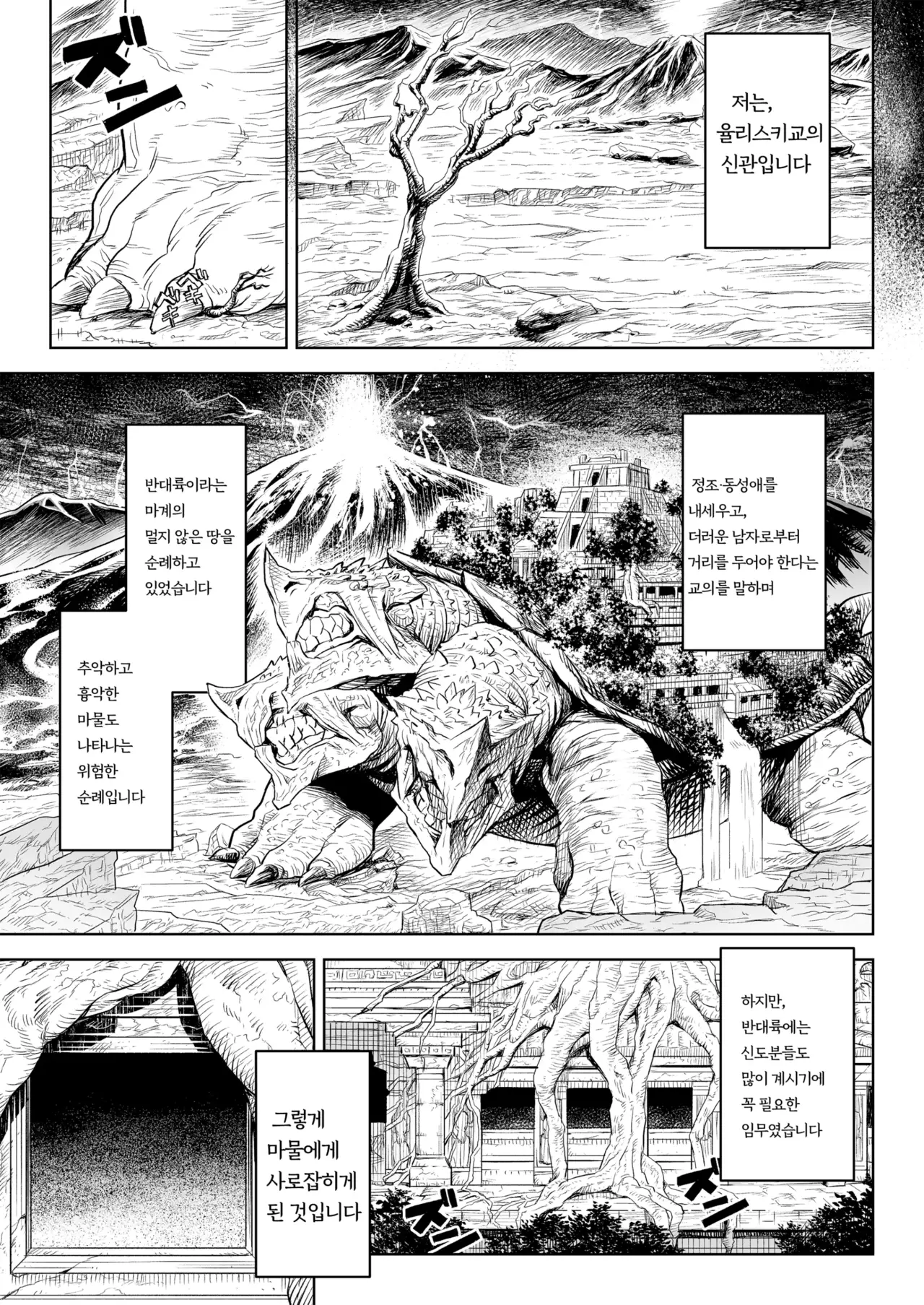 [I'm moralist (Take)] Monhin Junkai Gurphobia ~Aru Shoujo Shinkan no Ishu Shussan Jigoku~ | 암컷순회 그루포비아~어떤 소녀신관의 이종출산지옥~ [Korean] [Digital]