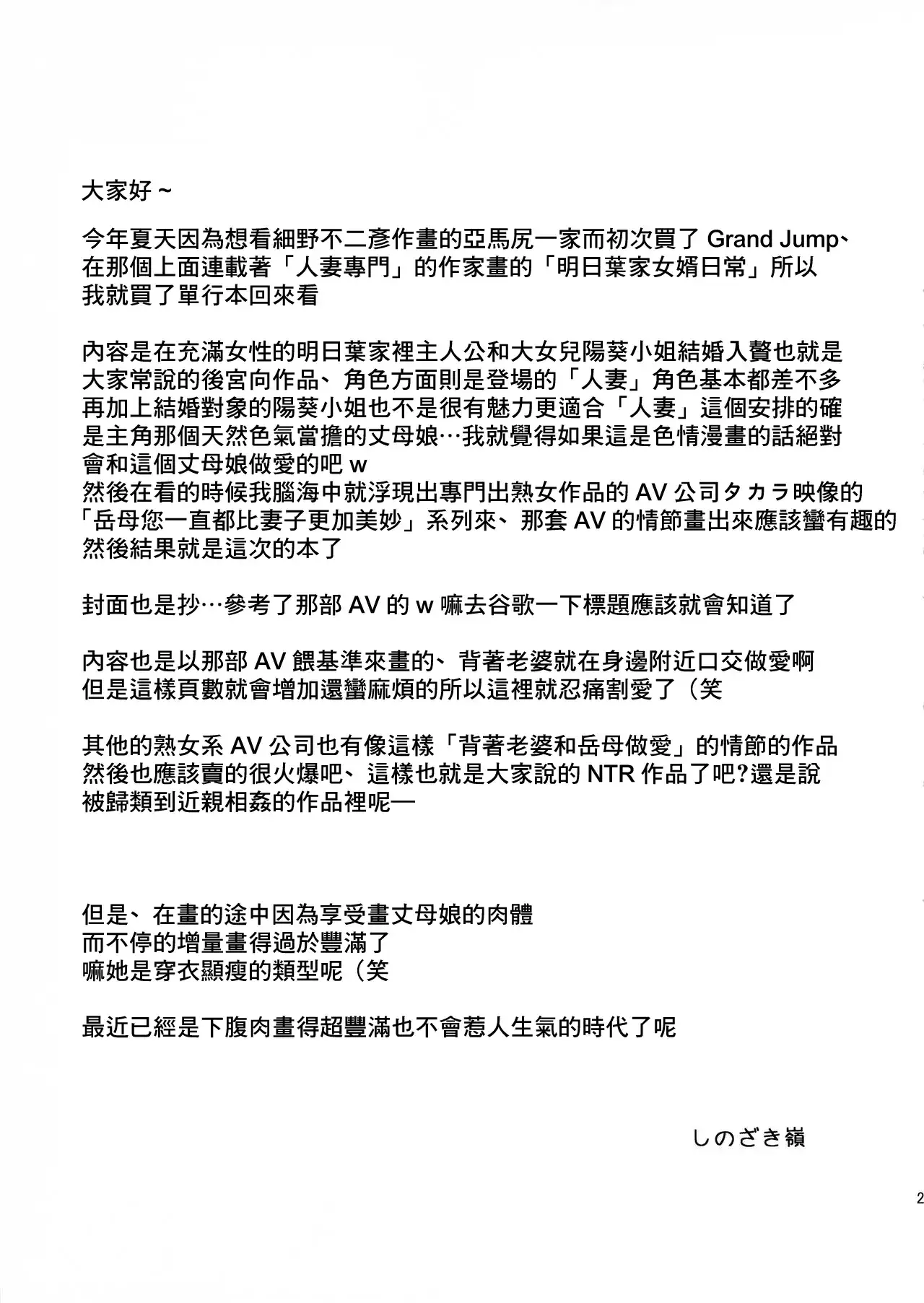 (C91) [BlueMonday (しのざき嶺)] お義母さん、ひなたさんよりずっといいよ (明日葉さんちのムコ暮らし) [中国翻訳]