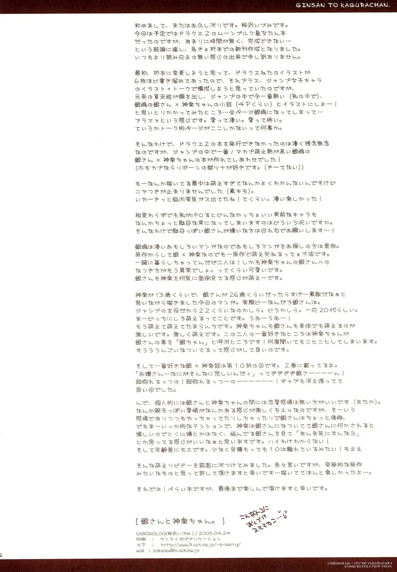 (Cレヴォ37) [CHRONOLOG (桜沢いづみ)] ぎんさんとかぐらちゃん。 (銀魂)