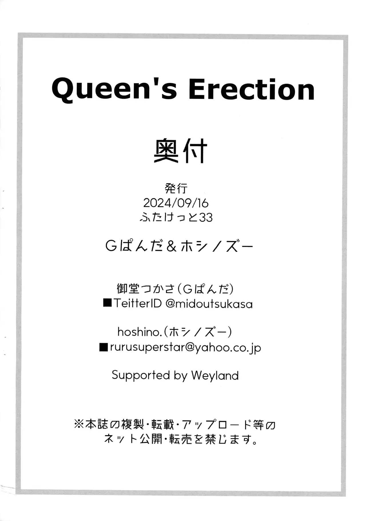 (ふたけっと33) [Gぱんだ, ホシノズー (御堂つかさ, hoshino.)] Queen's Erection