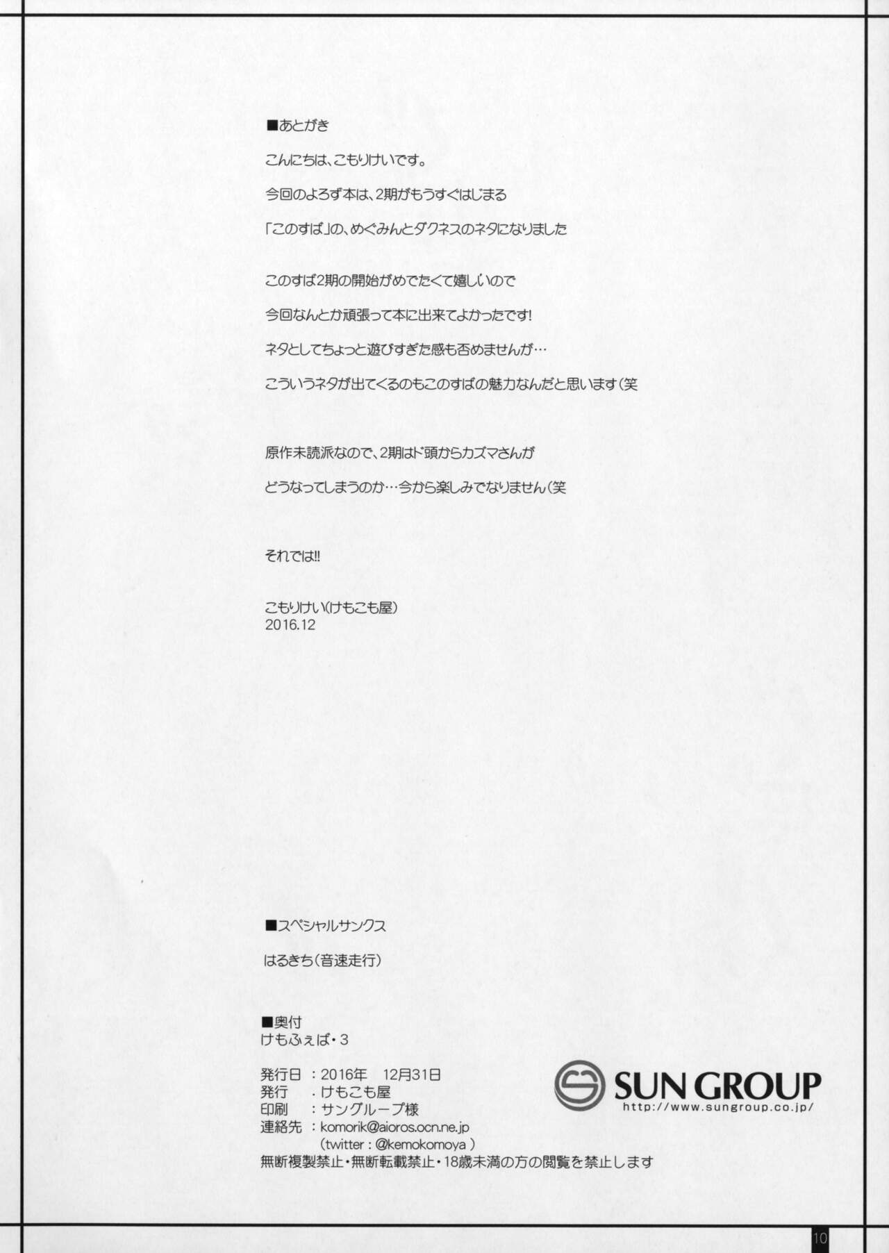 (C91) [Kemokomoya (Komori Kei)] Kemofavor 3 (Kono Subarashii Sekai ni Syukufuku o!) [Korean]