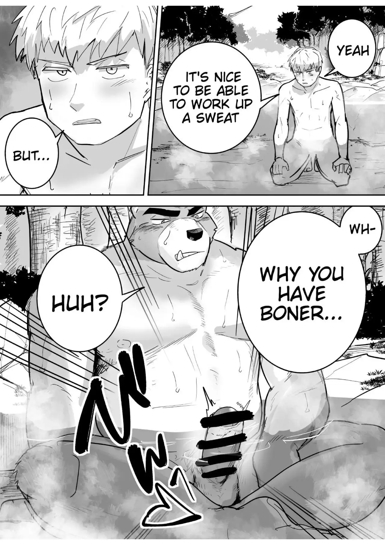 [Saikoro De Kimerusouchi] Aibou Gachimuchi Juujin to Onsen de Hadaka no Tsukiai | Naked with a partner gangly beastie at a hot spring [English]