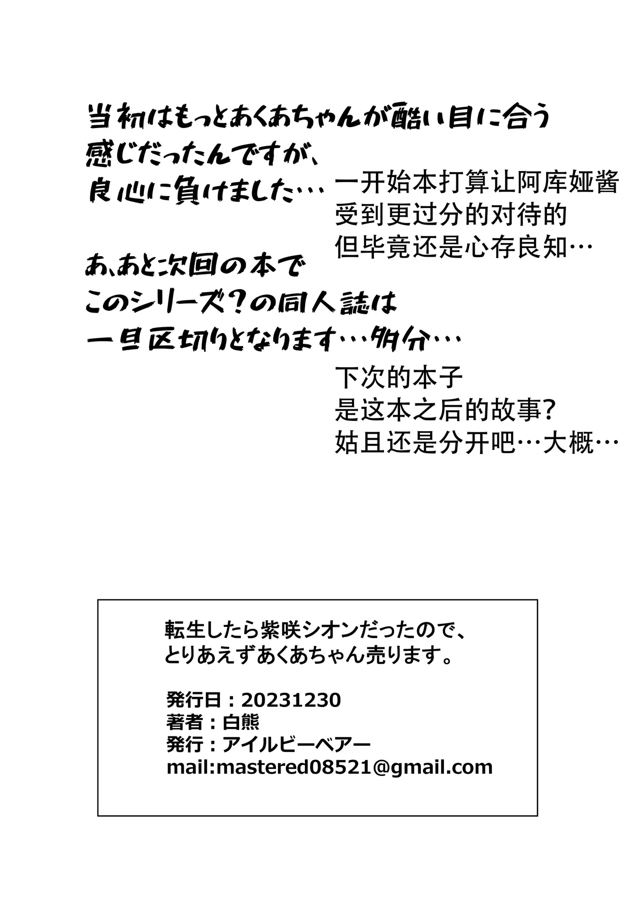 [アイルビーベアー (白熊)] 転生したら紫咲シオンだったので、とりあえずあくあちゃん売ります。 (湊あくあ、紫咲シオン) [中国翻訳] [DL版]