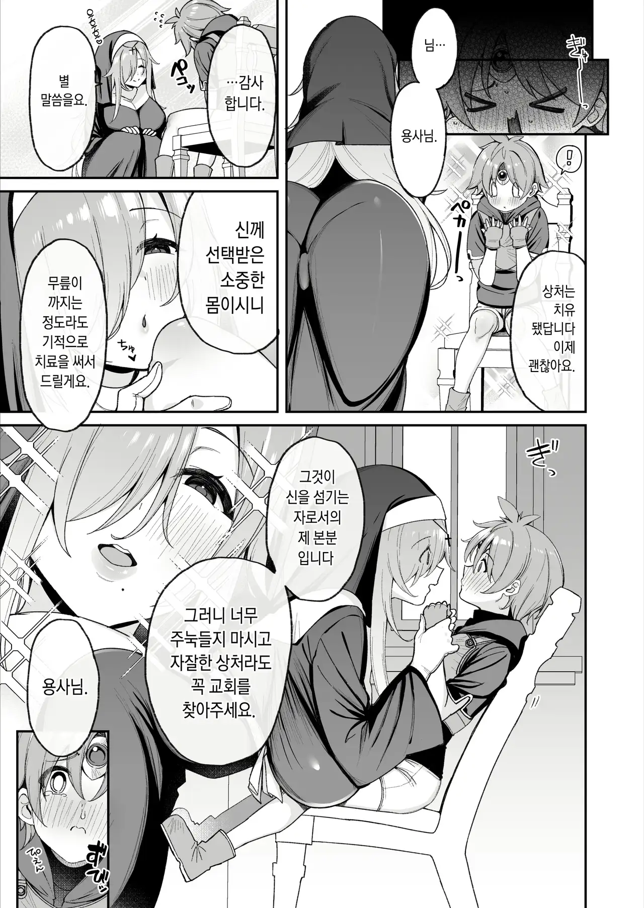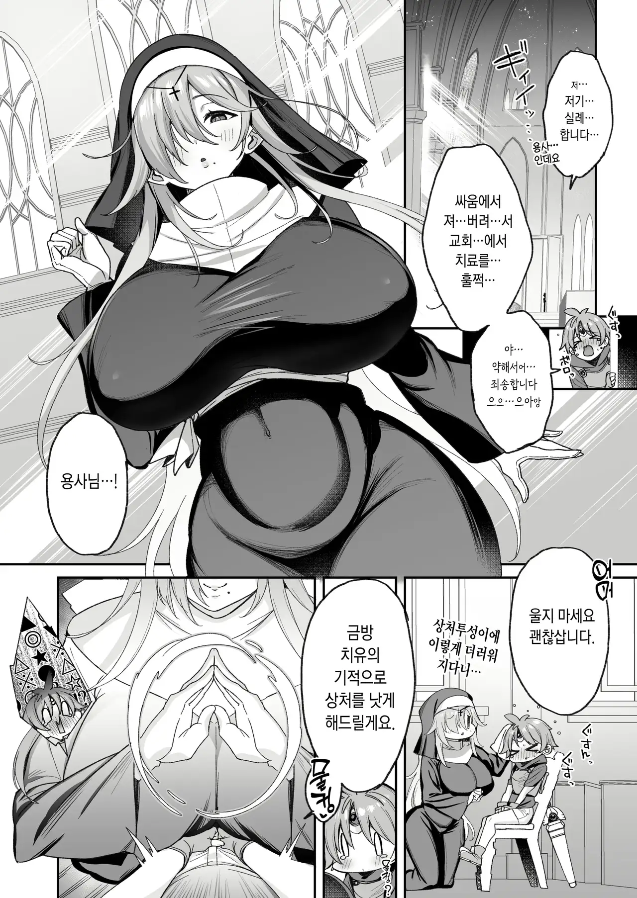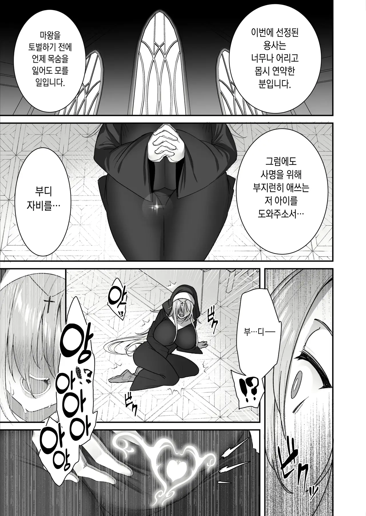 [Torinosu (Shingo.)] Yuusha-sama ga Yowakute Fuan nanode Kami wa Sister ni Tanetsuke Koubi o Meijimashita | 용사님이 약해서 불안하니까 신은 수녀에게 교배 교미를 명령 했습니다 [Korean]