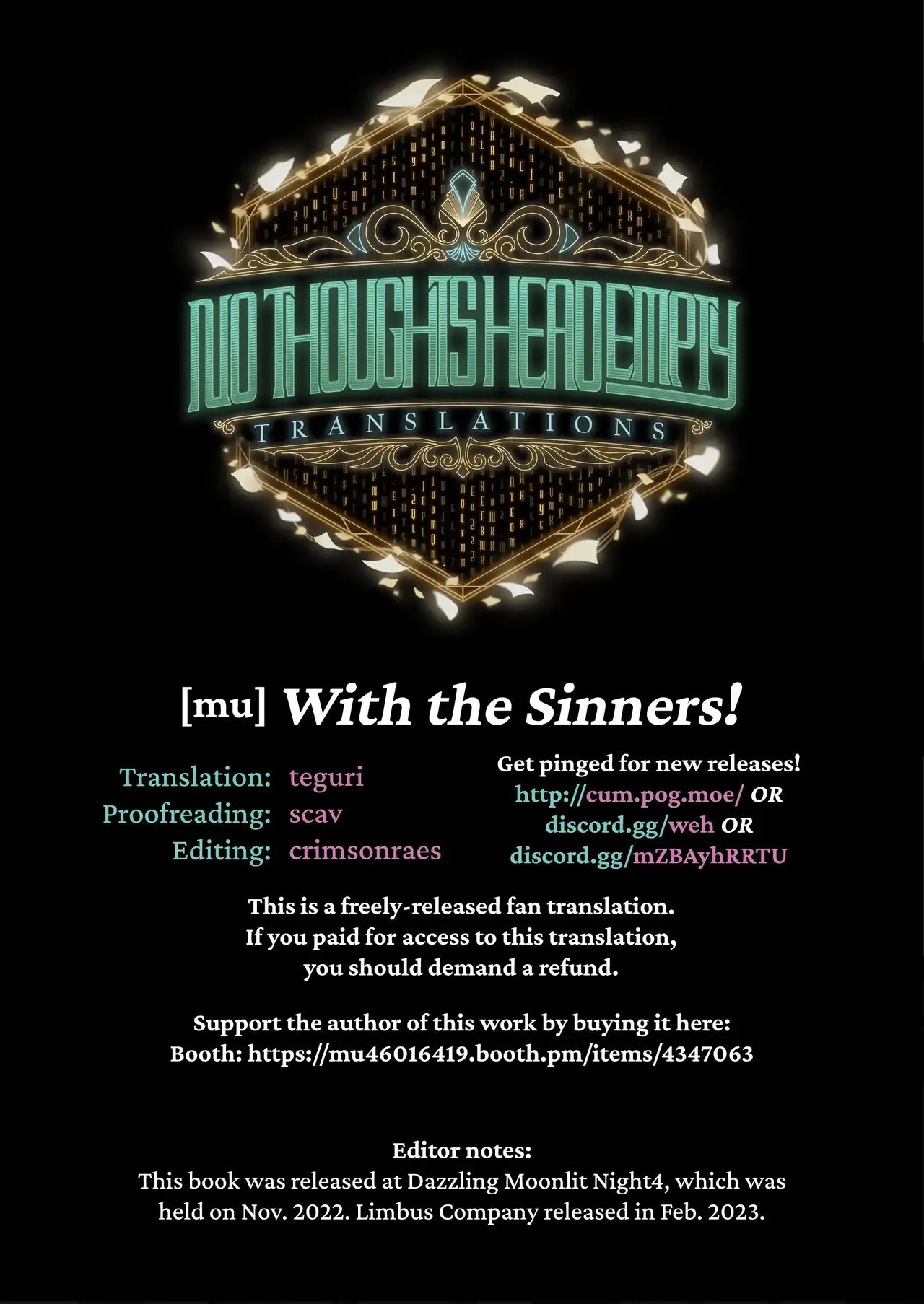 [mu] Shuujin to!! | With the Sinners!! (Limbus Company) [English] [Digital] [head empty]