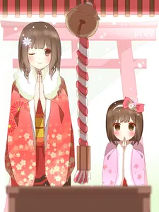 [のん] お習字のお稽古をする、あっきゅんと小鈴。 (東方Project)