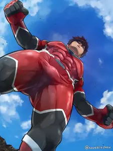 [えびてん丼 (とらきち)] [Fanbox 2021.08] ブロンズ像にされたヒーローを下から